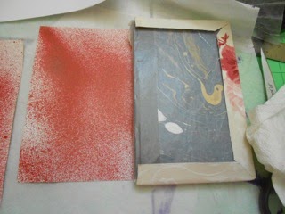 I've been working on books to go into another multi-section (5) slipcase for our TeaBAG challenge. I wanted to do a pop-up carousel book for a while and wondered if you could tell a story using just 5 pages and 5 books. First is a photo of the last slipcase with some stamps on it, then construction of a sample (3" X 3") book.